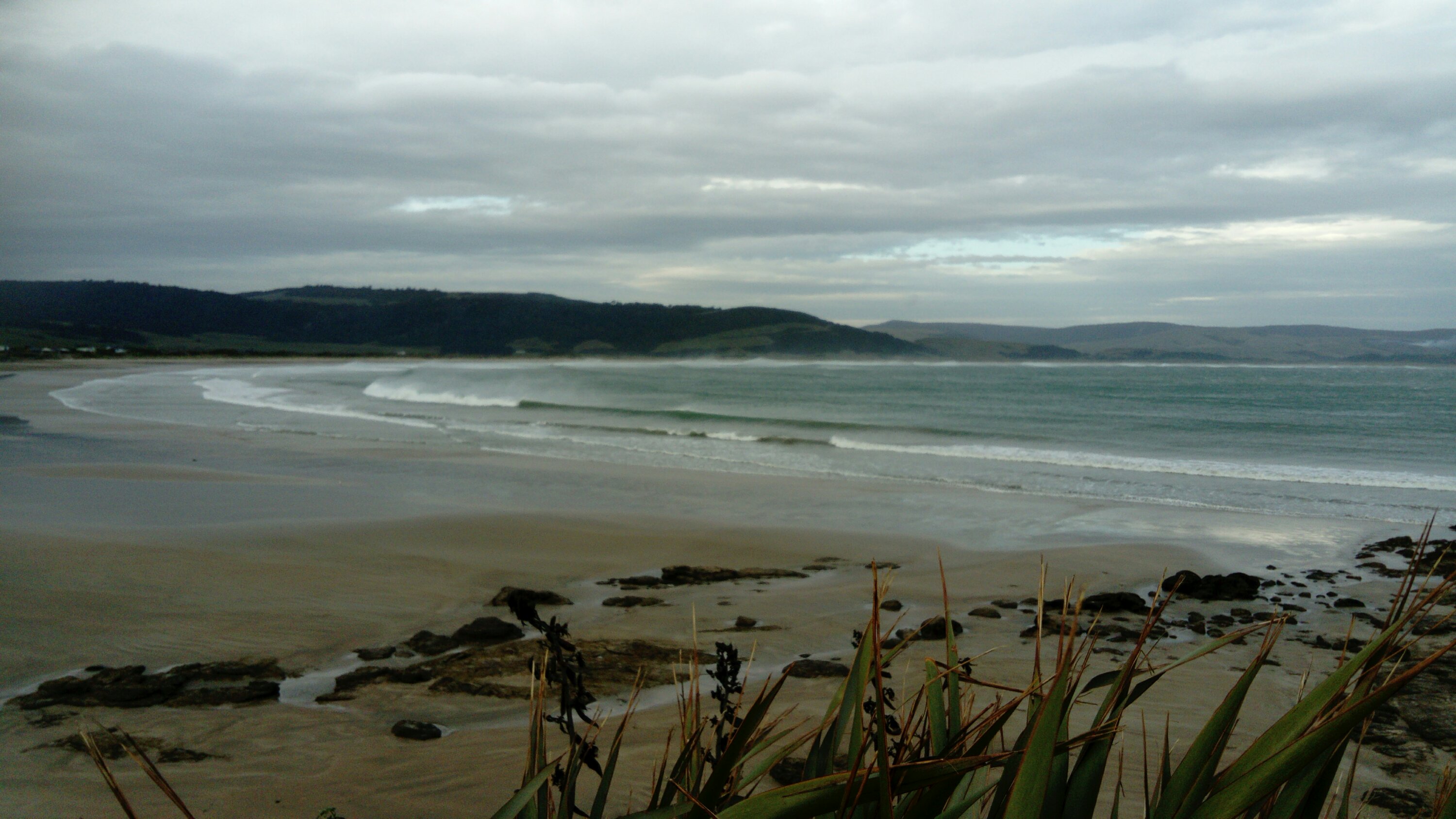 At the end of the day we pitch the tent in Curios Bay near a petrified forest and the penguins 🐧 which we unfortunately miss… But the scenery and the rough wind make this place really atmospheric. Unfortunately it starts to rain but there’s a kitchen to spend the evening in.