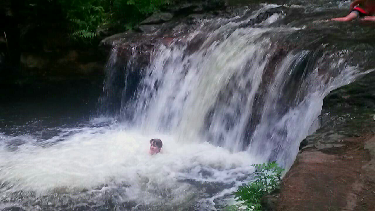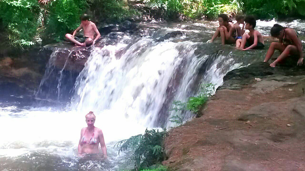 Hier trifft heiße Quelle auf Flusswasser, was ein Baden in angenehmen Badewannentemperaturen ermöglicht. Dazu noch ein kleiner Wasserfall zur Rückenmassage… Perfekt, vor allem an einem so heißen Tag wie heute, was natürlich auch anderen Touristen anzieht. Abends haben wir feststellen müssen, dass unsere Badesachen alle rostbraun verfärbt wurden… 😵