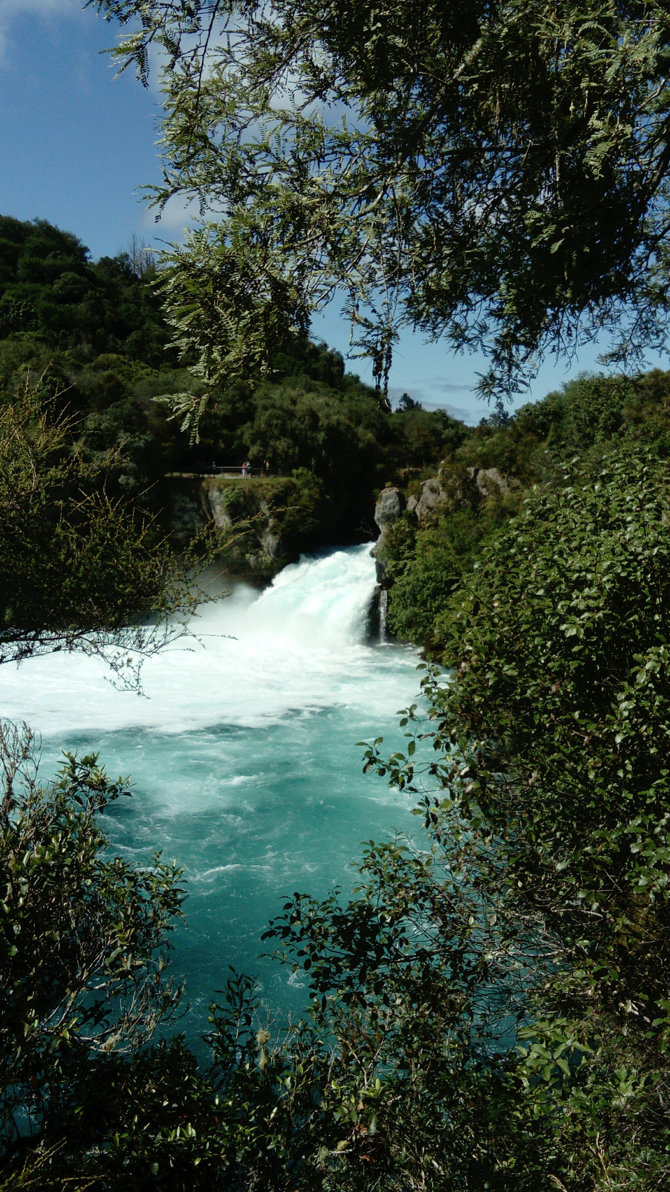 1. Die Huka Fälle: Der Waikato ist Neuseelands längster Fluss und fließt normalerweise gemächlich und auf bis zu 100 Metern Breite vom Lake Taupō gen Norden. Kurz vor den Huka Falls muss das Wasser allerdings durch eine enge Schlucht aus hartem Vulkangestein – in etwa so, als würde das Wasser durch einen engen Feuerwehrschlauch gepresst.