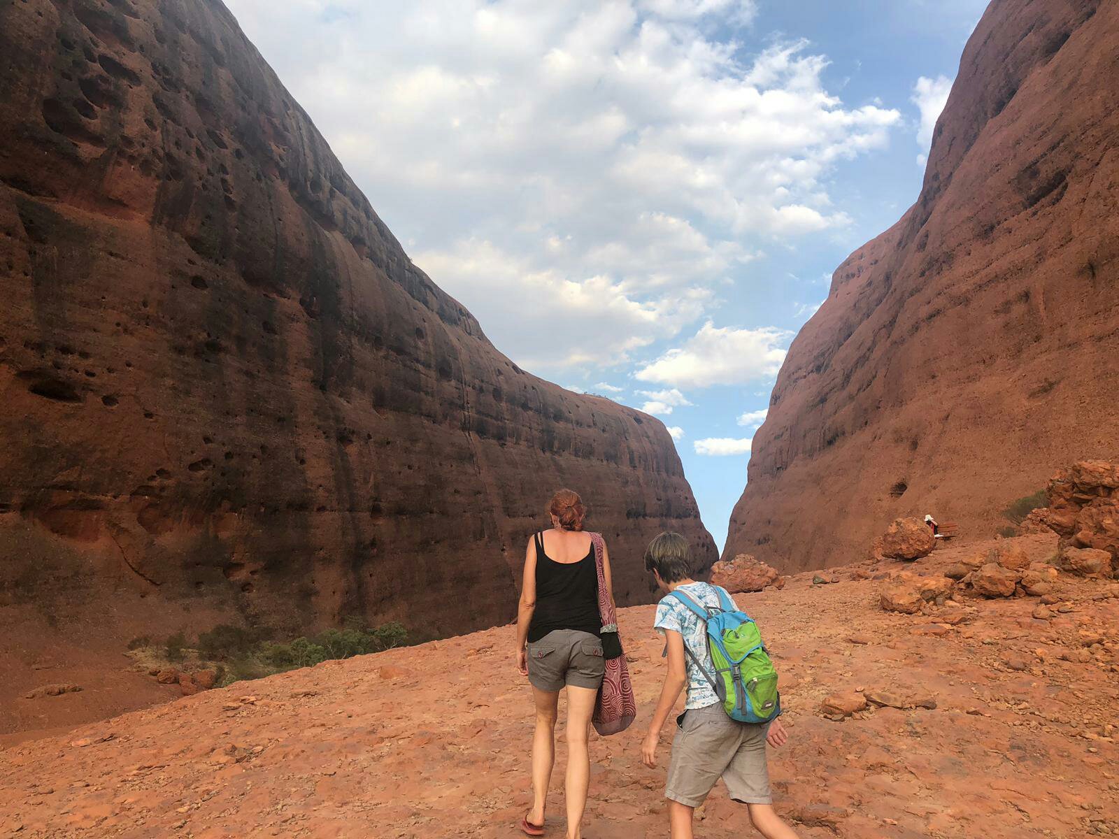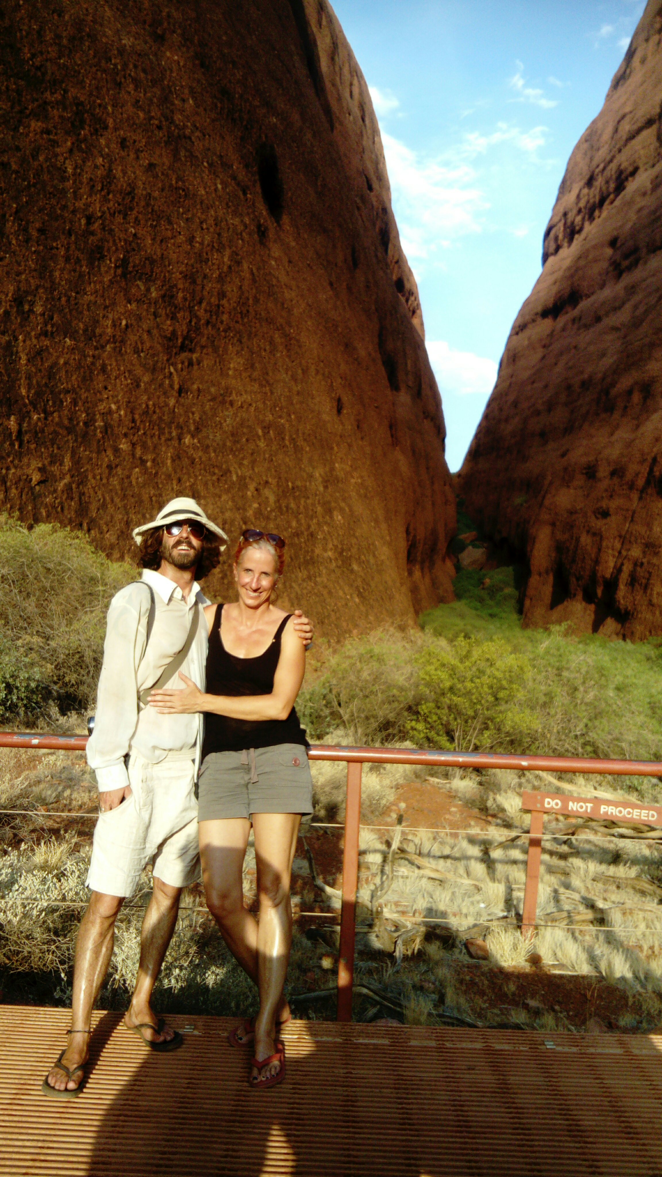 After lunch and a dip in the pool, we head off to Katajuta to be able to go for a little stroll before sunset. We love the 39 °C degrees, the rock formations in the heart of Australia and each others company. It just can’t be better… (although I miss Nicole a bit, as we were here together 20 years ago).