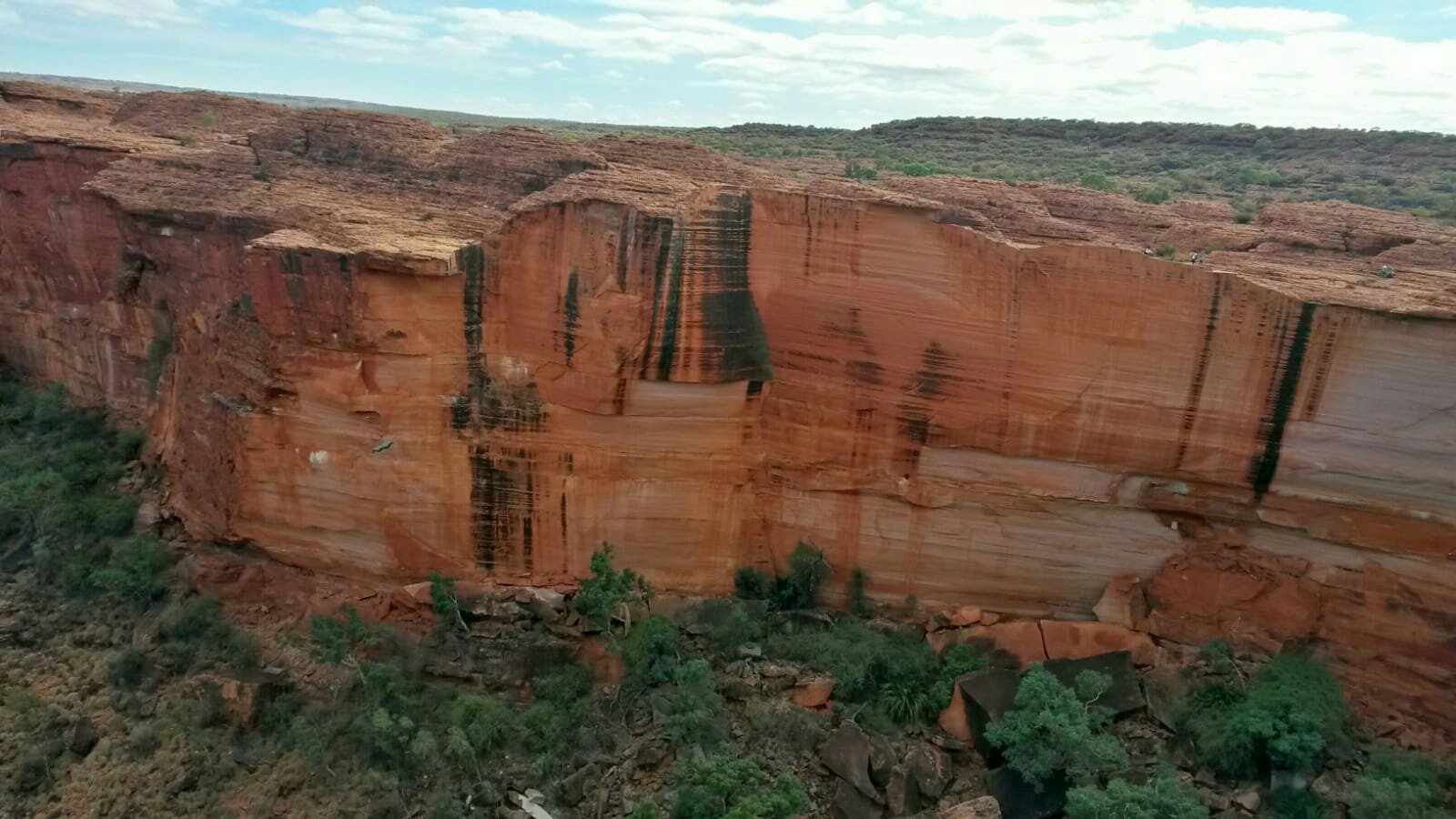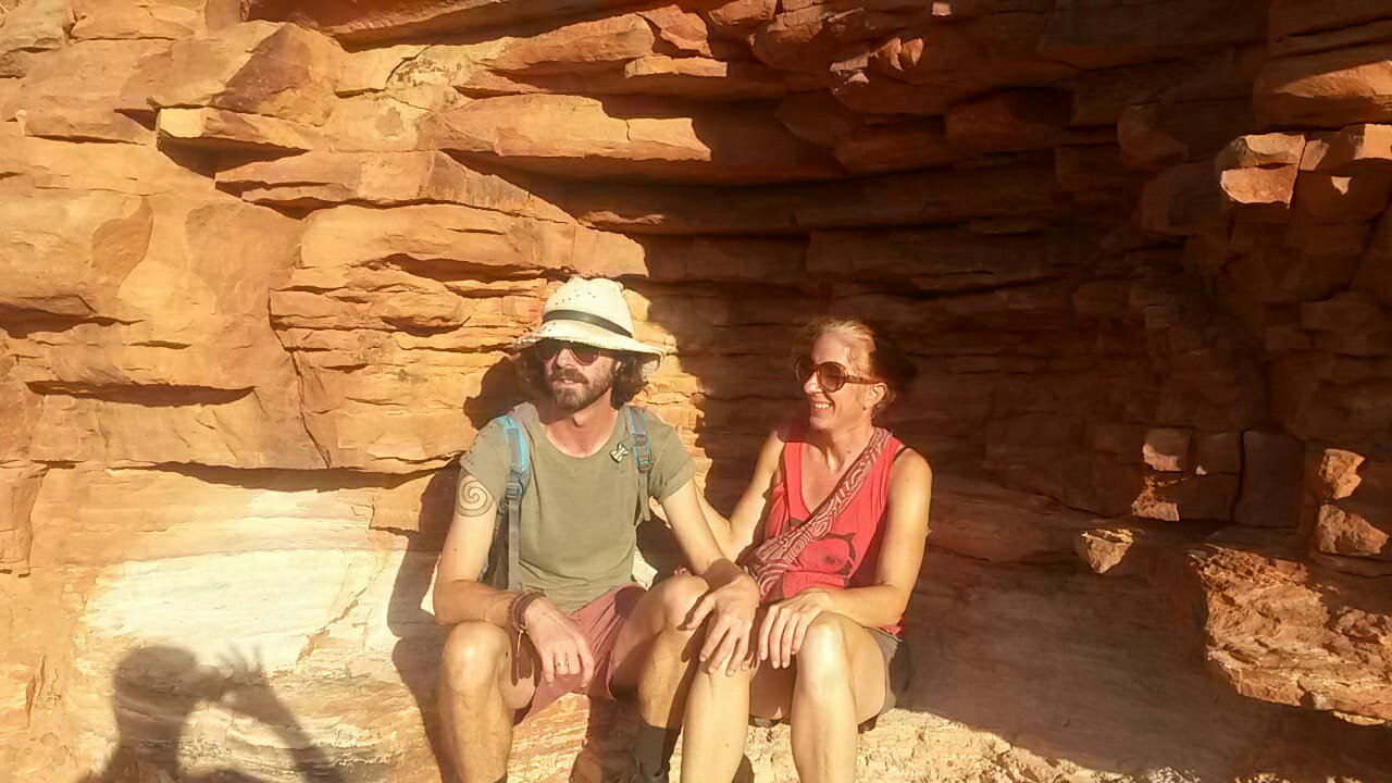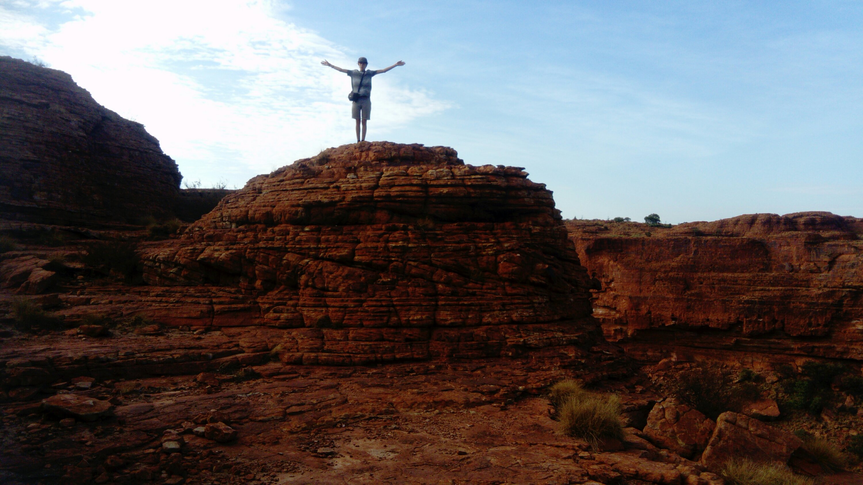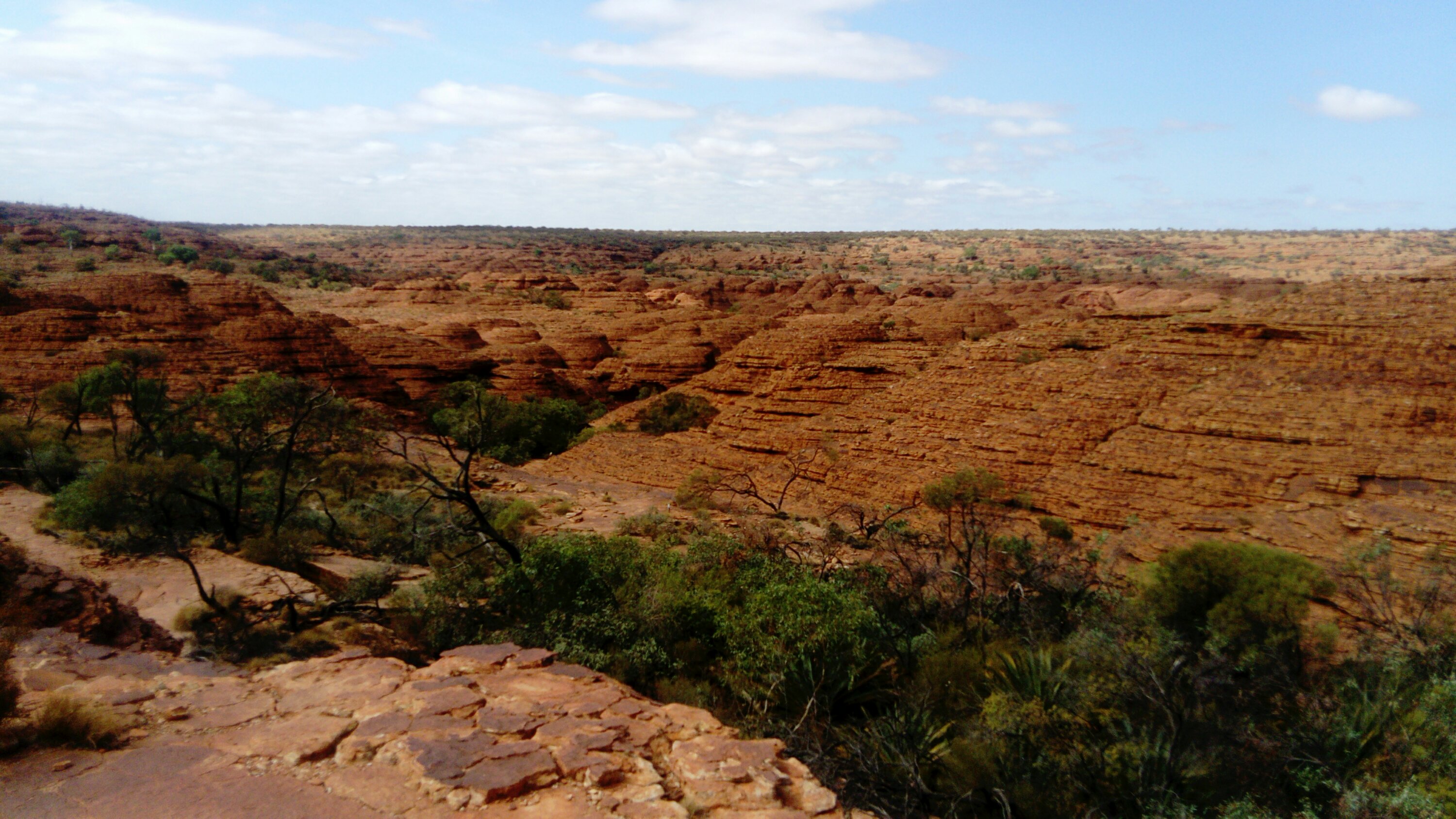 The next day we get up at half past five. It’s still dark but at least half of the campsite is already awake. We want to do the rim walk around King’s Canyon. It’s much more exciting than Uluru as it’s up and down and around rocks, over gaps and ladders, once on top of a 100 m cliff, then in the “garden of Eden”, a waterhole at the bottom of the canyon. Four hours pass quickly, fortunately it’s not as hot as on our last walk and we all have an adventurous and enjoyable time. Amazing what water can create – especially in an arid region.