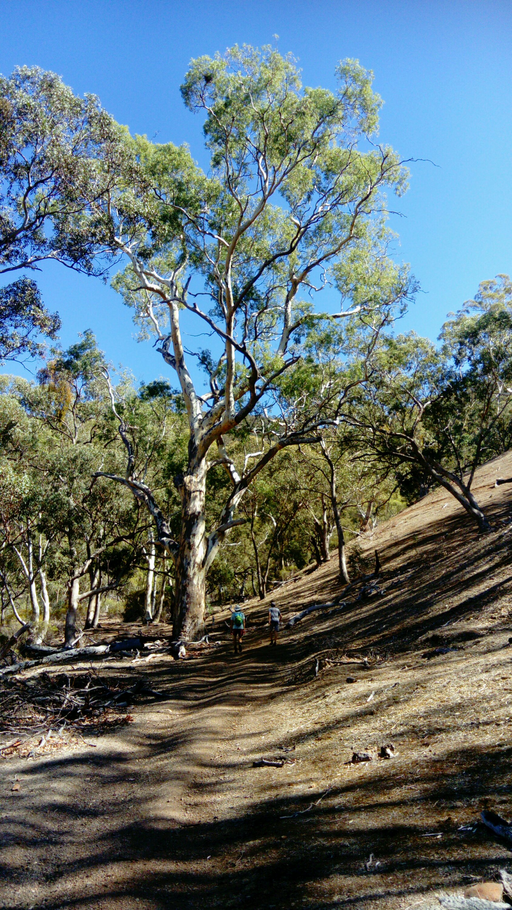 Don’t want to sit in the car today. It’s such a nice day – like every day since we are here. Much more suitable for a walk than a drive. We start walking from the campsite and 15 minutes later we are right in the bush, wild kangaroos, kakatoos, parrots. Exactly my thing. We follow little trails, made be wildlife, bikes, walkers? We don’t care. Two hours later we are back at the tents.