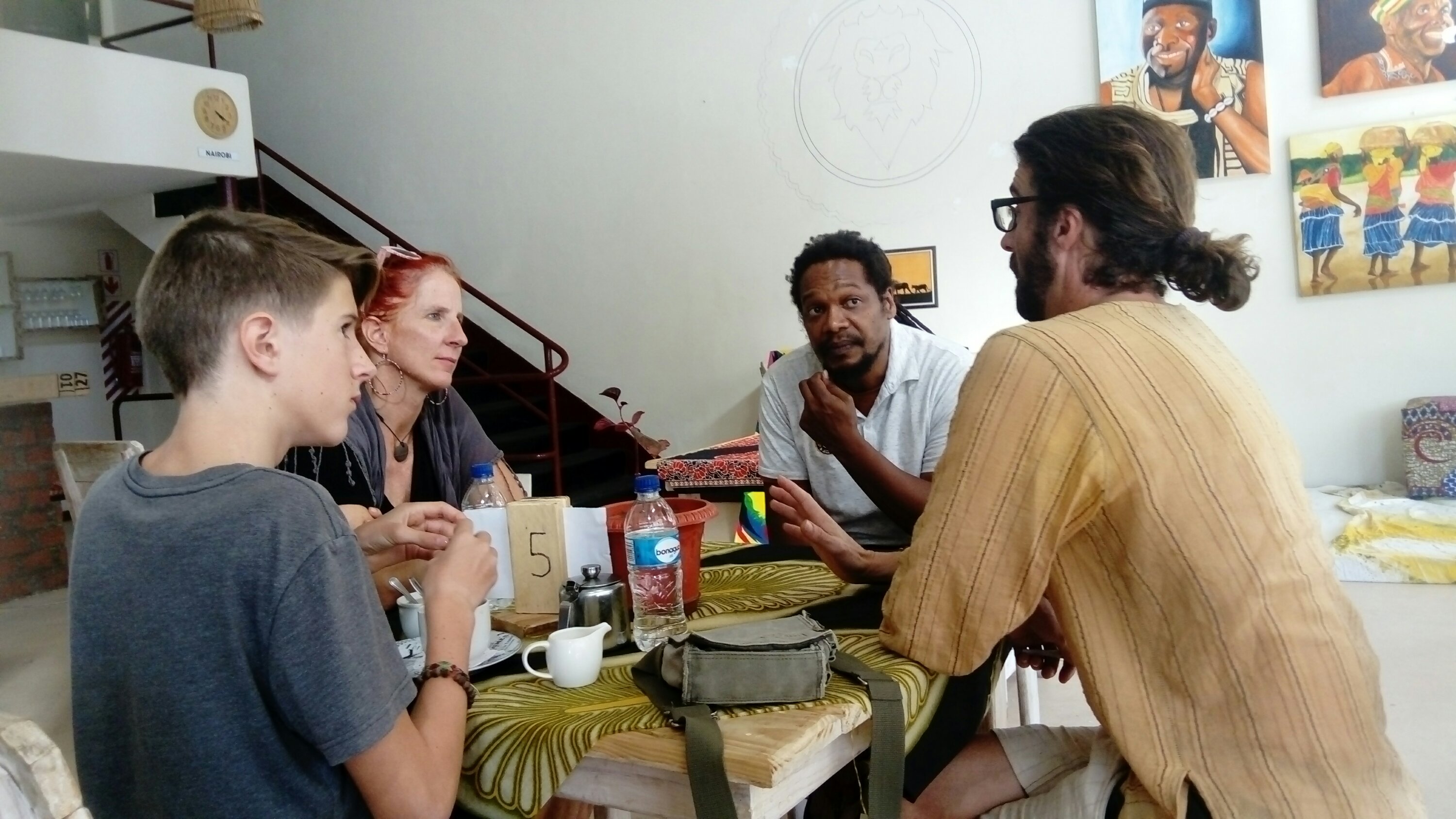 We need a plan. How do we want to travel around Namibia? By rental car, tour operator or private tour guide? We go to every travel agency and tour operator along the main road. The boys are not really enjoying themselves but no complaints at all. They are really fantastic. Brian and Nochi at the “Kalahari Jazz Cafe” cheer us up and help us find the right thing for us…