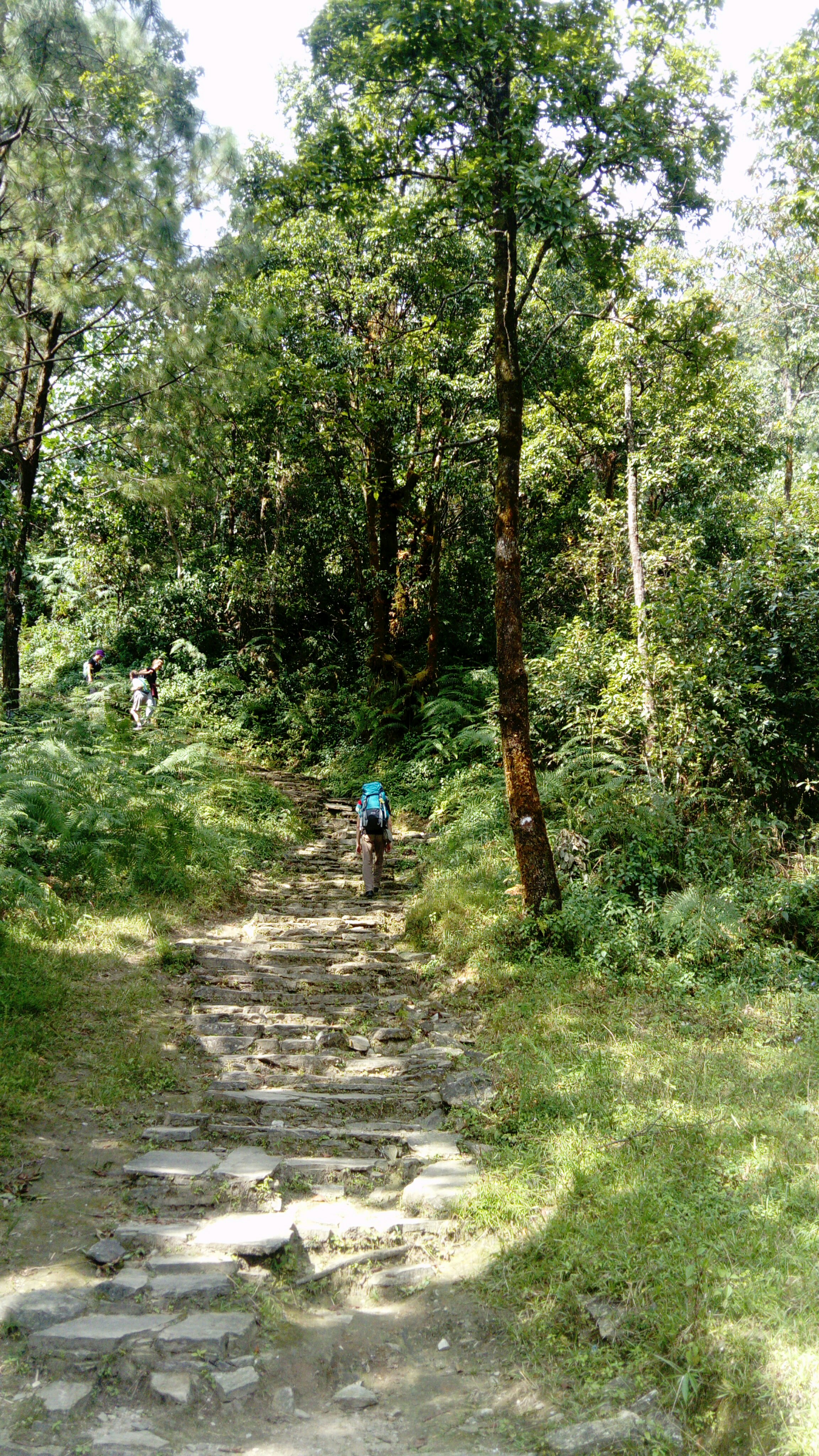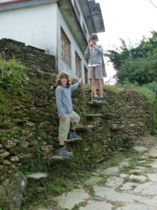 Der Aufstieg mit den Rucksäcken ist ganz schön anstrengend, aber zum Glück besteht der Weg nicht nur aus Treppen, was wir anfangs befürchtet hatten. Wir kommen durch kleine Bergdörfer in denen die Zeit stehengeblieben scheint, dann geht’s wieder in den Wald.