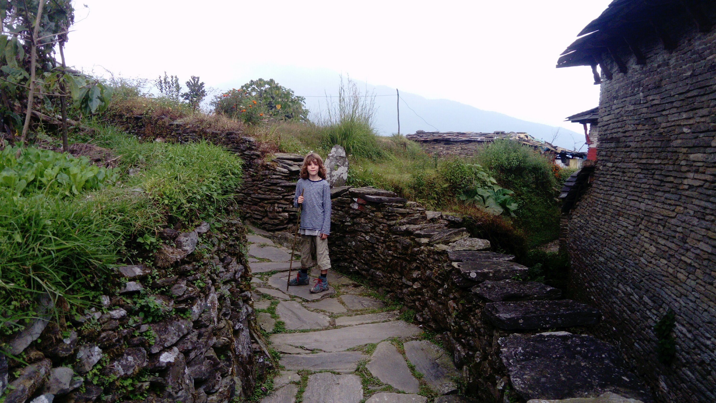 Dhampus selbst ist ein kleines Dorf, das aber bereits seit längerem von Touristen aufgesucht wird, denn es gibt einige Hotels und Unterkünfte. Den Charme hat es dennoch nicht verloren und die meisten Leute leben ihren Alltag wie seit hunderten von Jahren, wenn man Strom, fließendes Wasser absieht. Wir wohnen bei einer netten kleinen Familie, die in ihrem alten traditionellen Haus kleine, einfache Zimmer vermieten. Anfangs haben wir Bedenken wegen Flöhe, Bettwanzen usw. (Bill hatte kleine Steine und undefinierbare kleine braune Würstchen im Bett) und auch die Toilette ist gewöhnungsbedürftig, aber alles andere, wie die Familie, das Essen, die Lokation macht unsere Bedenken zunichte. Uns gefällt es dann sogar so gut, dass wir noch eine Nacht hier dranhängen.